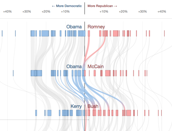 This figure summarizes the link structure within a community of political blogs (from 2004), where red nodes indicate conservative blogs, and blue liberal. Orange links go from liberal to conservative, and purple ones from conservative to liberal. The size of each blog reflects the number of other blogs that link to it