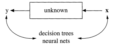 The analysis in this approach considers the inside of the box complex and unknown. Their approach is to find a function f(x)-an algorithm that operates on x to predict the responses y.